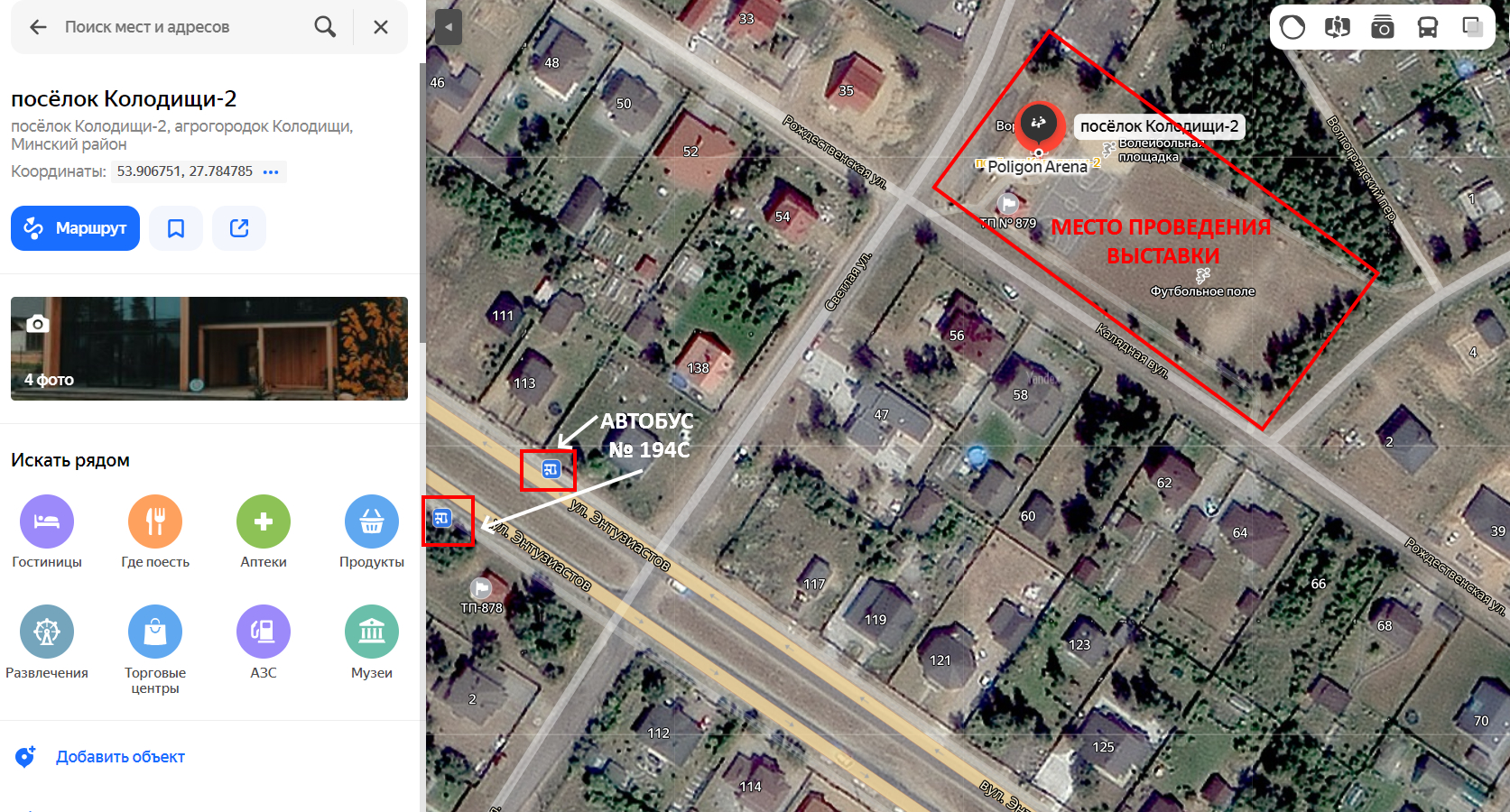 а\г. Колодищи, ул. Светлая, 136, стадион "POLIGON arena" Координаты: 53.90658447407013, 27.785098564610937